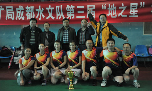 經過兩天激烈比賽,院第三屆“地之星”杯羽毛球比賽今天中午在成都市體育中心落下帷幕。在決賽中,四強隊伍激勵拼殺,最終水文公司在決賽中發揮穩定,戰勝巖土公司奪得本屆羽毛球賽冠軍,巖土公司獲得亞軍,地質公司獲得季軍。
