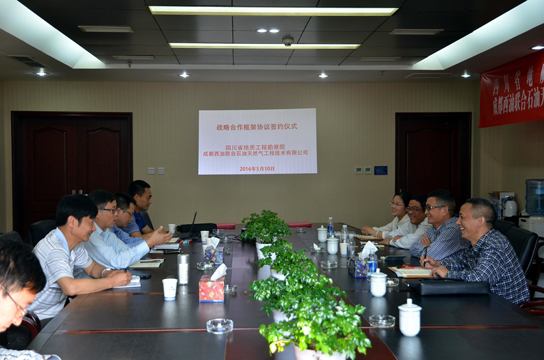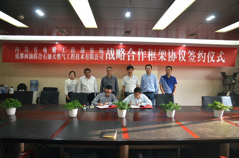 5月10日,在我院321會(huì)議室舉行了四川省地質(zhì)工程勘察院與成都西油聯(lián)合石油天然氣工程技術(shù)有限公司戰(zhàn)略合作框架協(xié)議簽署儀式。院長(zhǎng)安世澤、黨委書記陽(yáng)光輝、水文地質(zhì)工程公司總經(jīng)理張恒,成都西油聯(lián)合石油天然氣工程技術(shù)有限公司總裁牟德剛、技術(shù)總監(jiān)廖忠會(huì)等出席了簽約儀式。