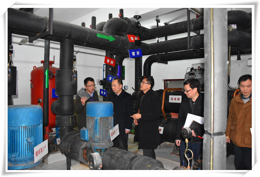 1月12日上午,成都市國土資源局黨組書記、局長胡斌一行來我院調研指導工作,詳細詢問并了解成都市淺層地溫能的開發利用情況。在院領導的陪同下,胡斌局長一行參觀考察了我院設計建設的省級可再生能源公共建筑示范工程——成都水文隊科研用房地源熱泵中央空調工程。