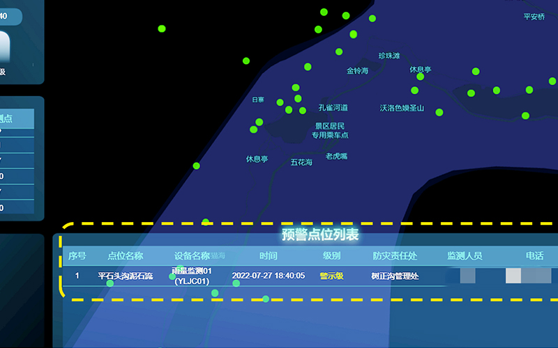 監測預警平臺顯示預警信息